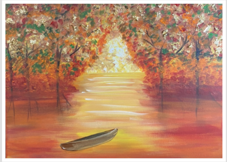 Join us in painting “Colorful Lagoon” at the Goblin & the Grocer Restaurant in Beverly Shores Indiana.