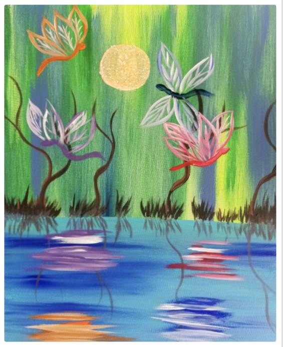 Join us in painting “Dancing Fireflies” at Crown Brewing/Carriage Court Pizza in Crown Point Indiana.