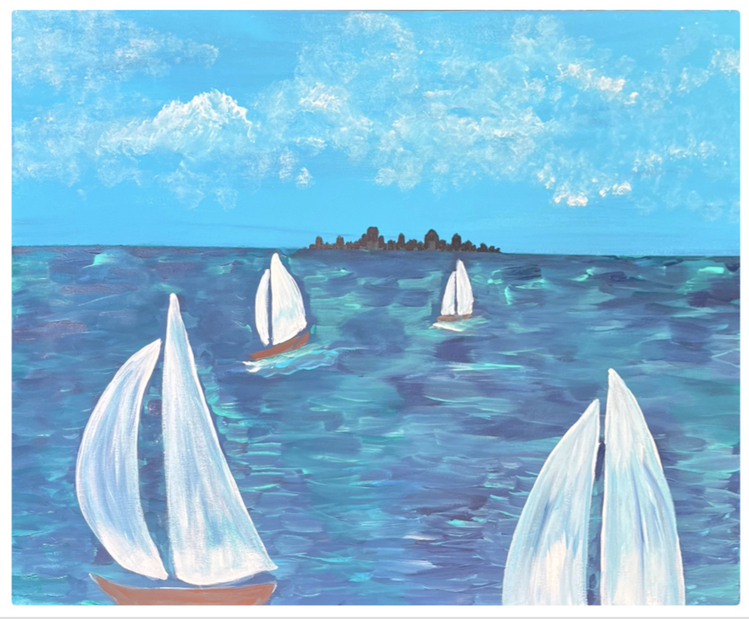 Join us at the Goblin and the Grocer Restaurant in Beverly Shores Indiana as we will be painting “Sail Into the Chicago Skyline” altogether. Bring your friends or come solo to meet new friends!