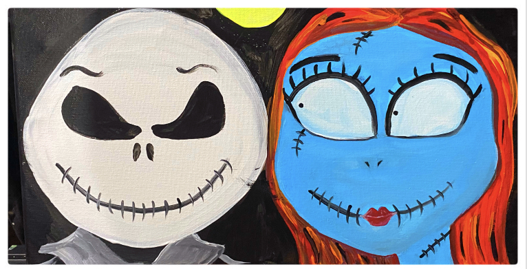 Join us in painting the festive “Jack & Sally” at the South Bend Chocolate Cafe at the Michigan City Lighthouse Outlet Mall in Michigan City Indiana.