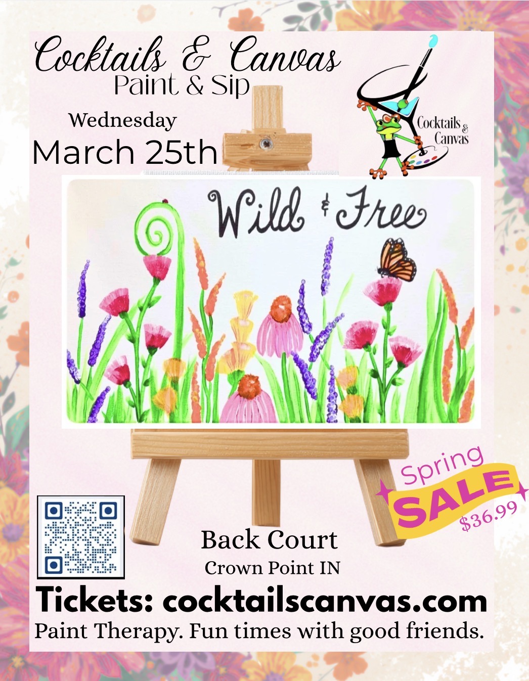 Join us in painting "Wild & Free" at the Back Court Bar and Restaurant in Crown Point Indiana. This restaurant is newly renovated, non-smoking and located right across from the Crown Point Fair Grounds. Bring your friends or come solo to meet new friends! No experience necessary. We will walk you through every step of […]