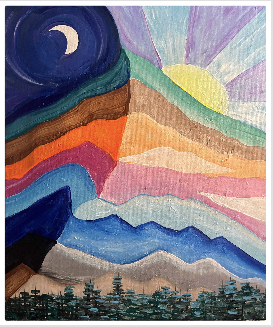 Join us in painting “Mountain of Many Colors” at the South Bend Chocolate Cafe at the Michigan City Lighthouse Outlet Mall in Michigan City Indiana. Bring your friends or come solo to meet new friends! We will be sampling delicious South Bend Chocolates as we paint and ALL painters receive a 20% discount on food, beverage, desserts and chocolate while painting!