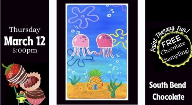 If you’re looking for an extraordinarily fun time you’ve found your happy place! Kick back, let the paint flow, and melt away the day’s stress with creative paint therapy and art entertainment. *Includes a free featured chocolate sampling too!