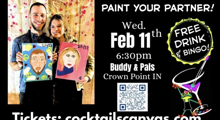 Join us for a delightful evening of creativity and laughter at Buddy & Pals in Crown Point Indiana! Whether you’re a seasoned artist or picking up a brush for the first time, no worries, our friendly instructors will be by your side every step of the way to guide you in painting a charming portrait of your partner.