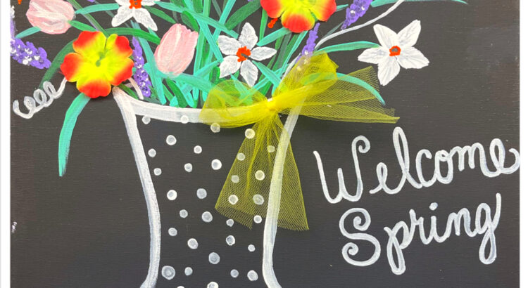 Join us in a fun time painting “Welcome Spring” at Up Your Alley in Schererville Indiana. Bring your friends or come solo to meet new friends! No experience necessary. We will walk you through every step of the way, no stress all fun! We will be painting spring flowers as well as affixing a few silk flowers and a yellow bow to add the perfect touch to this adorable Spring painting.