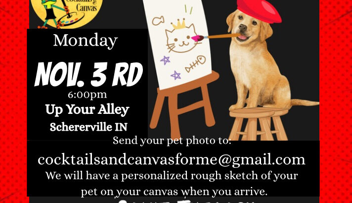 Join us at our “Paint Your Pet” exclusive painting event at Up Your Alley in Schererville Indiana. Bring your friends or come solo to meet new friends! No experience necessary. We will walk you through every step of the way, no stress all fun! This special event comes at the best time for a purr-fect Christmas present for that special someone or create for your own masterpiece of purr-fection!