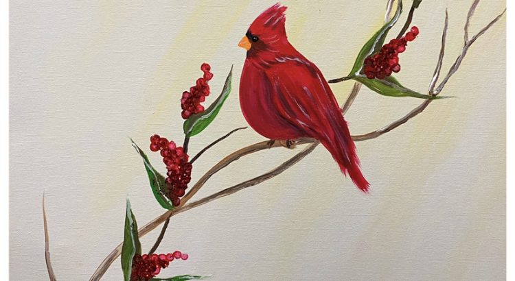 Join us in painting “Peaceful Cardinal” at Crown Brewing/Carriage Court Pizza in Crown Point Indiana.