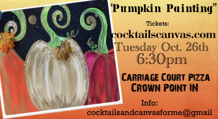 Join us in creating the festive “Pumpkin Painting” at Crown Brewing/Carriage Court Pizza in Crown Point Indiana. Bring your friends or come solo to meet new friends!